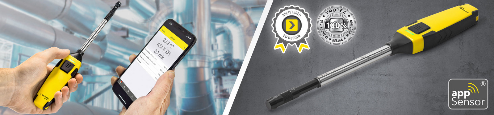 - Μετράει: ταχύτητα ανέμου, ογκομετρική παροχή, θερμοκρασία αέρα και σχετική υγρασία με την δωρεάν εφαρμογή MultiMeasure